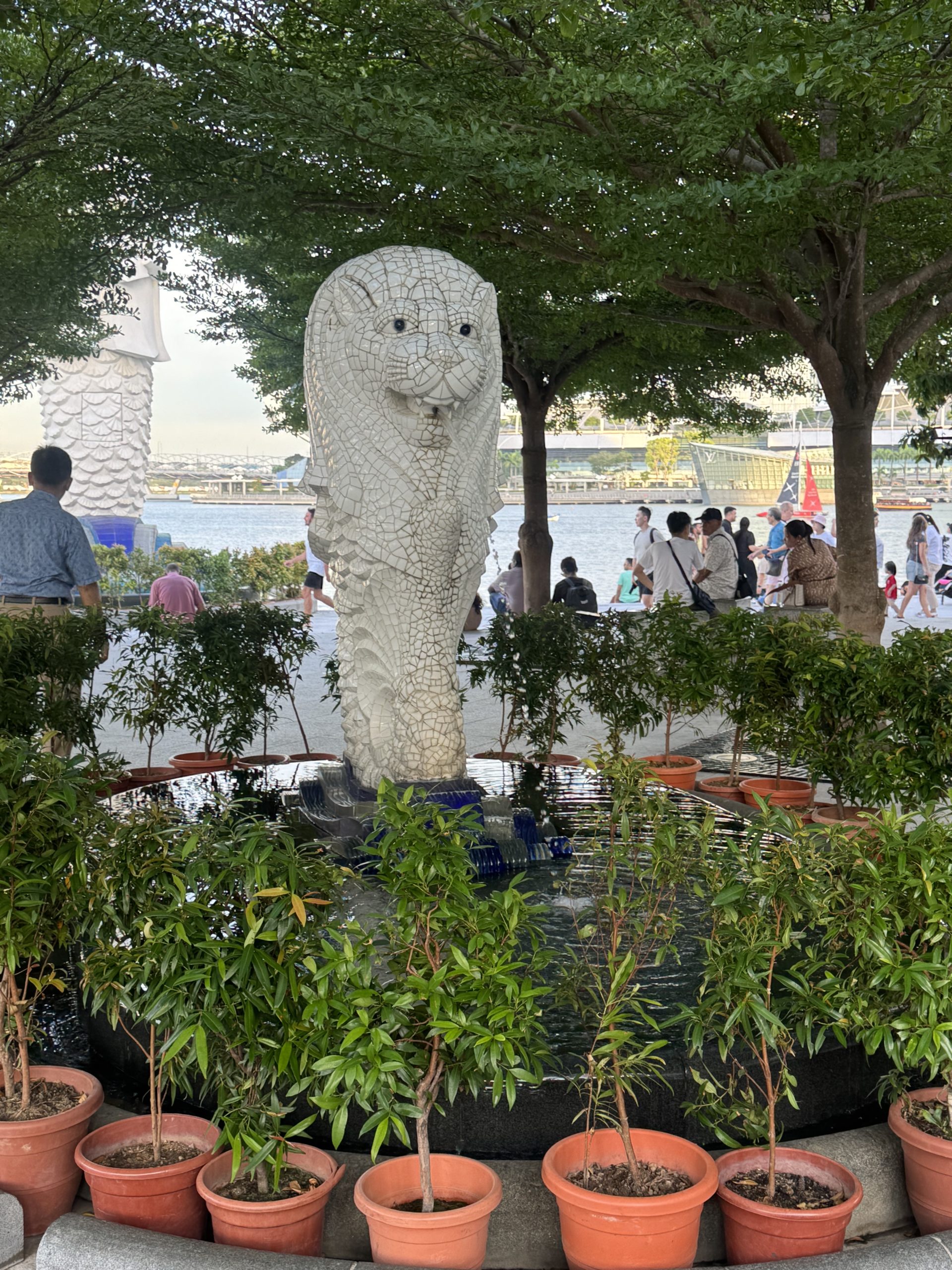 小さなマーライオン↓ 元祖はこちらだったようだと聞きました。背後にあるのが、多く知られたマーライオンです。